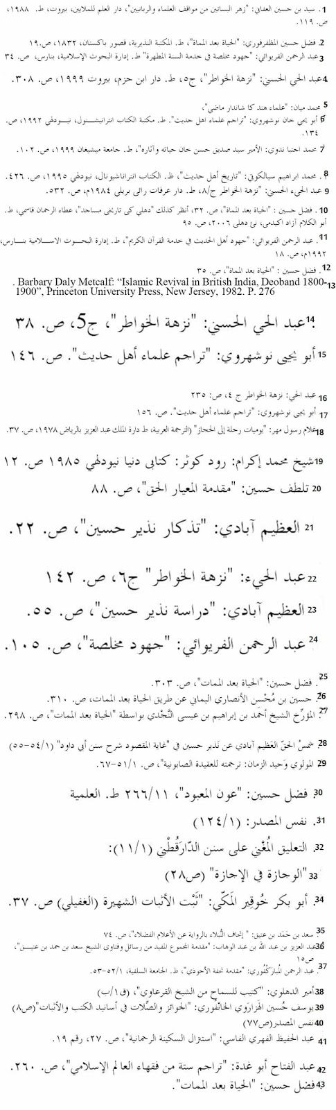 ٨. محمد إبراهيم سيالكوتي: "تاريخ أهل حديث"، ظ. الكتاب انتراناشيونال،
