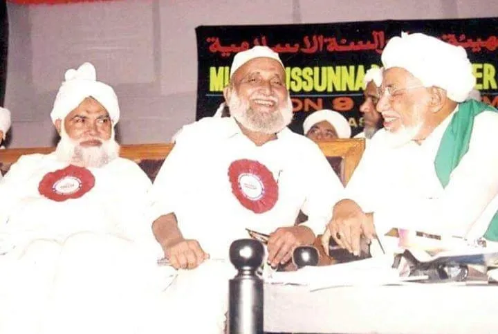 في الوسط: أستاذه العلامة بابو مسليار ترنغالي، وفي اليسار: الشيخ سليمان مسليار القاسمي رئيس العلماء