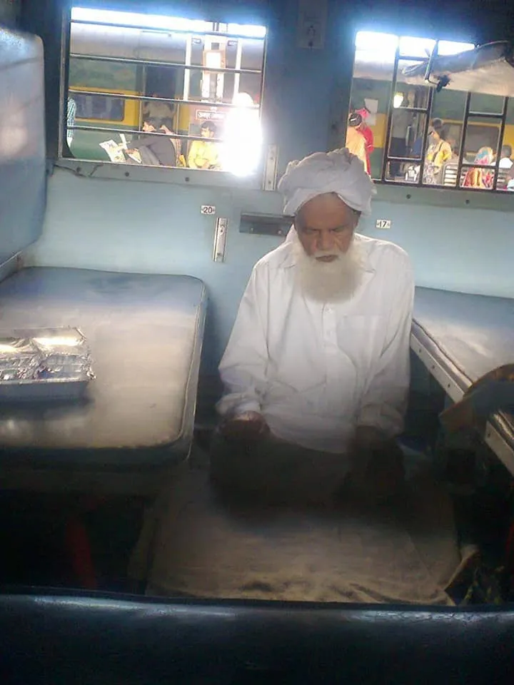 الشيخ أبو محمد باوا موسليار يؤدي الصلاة داخل قطار أثناء سفره