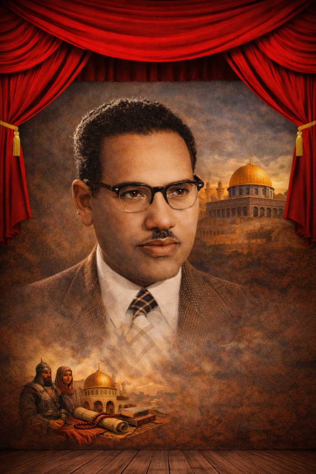 | علي أحمد باكثير (1910–1969)، أحد أبرز روّاد الأدب الإسلامي والمسرح العربي الحديث، جمع بين الفكر الإسلامي العميق والإبداع الأدبي في أعماله الخالدة. |