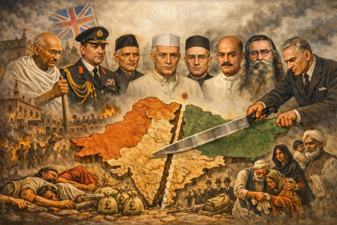 لم يكن الفقراء الذين يكافحون من أجل البقاء في القرى الهندية، بل النخب السياسية الانتهازية التي تواطأت على تمزيق البلاد طمعًا في السلطة، ومعهم البريطانيون الذين جاؤوا لملء جيوبهم من خيرات الوطن قبل الرحيل.