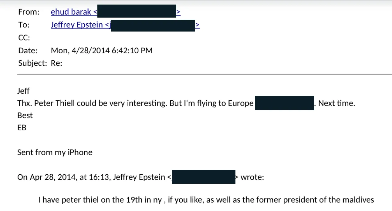 وثيقة بريد إلكتروني تعود لعام 2014، تُظهر مراسلة بين إيهود باراك وجيفري إبستين |